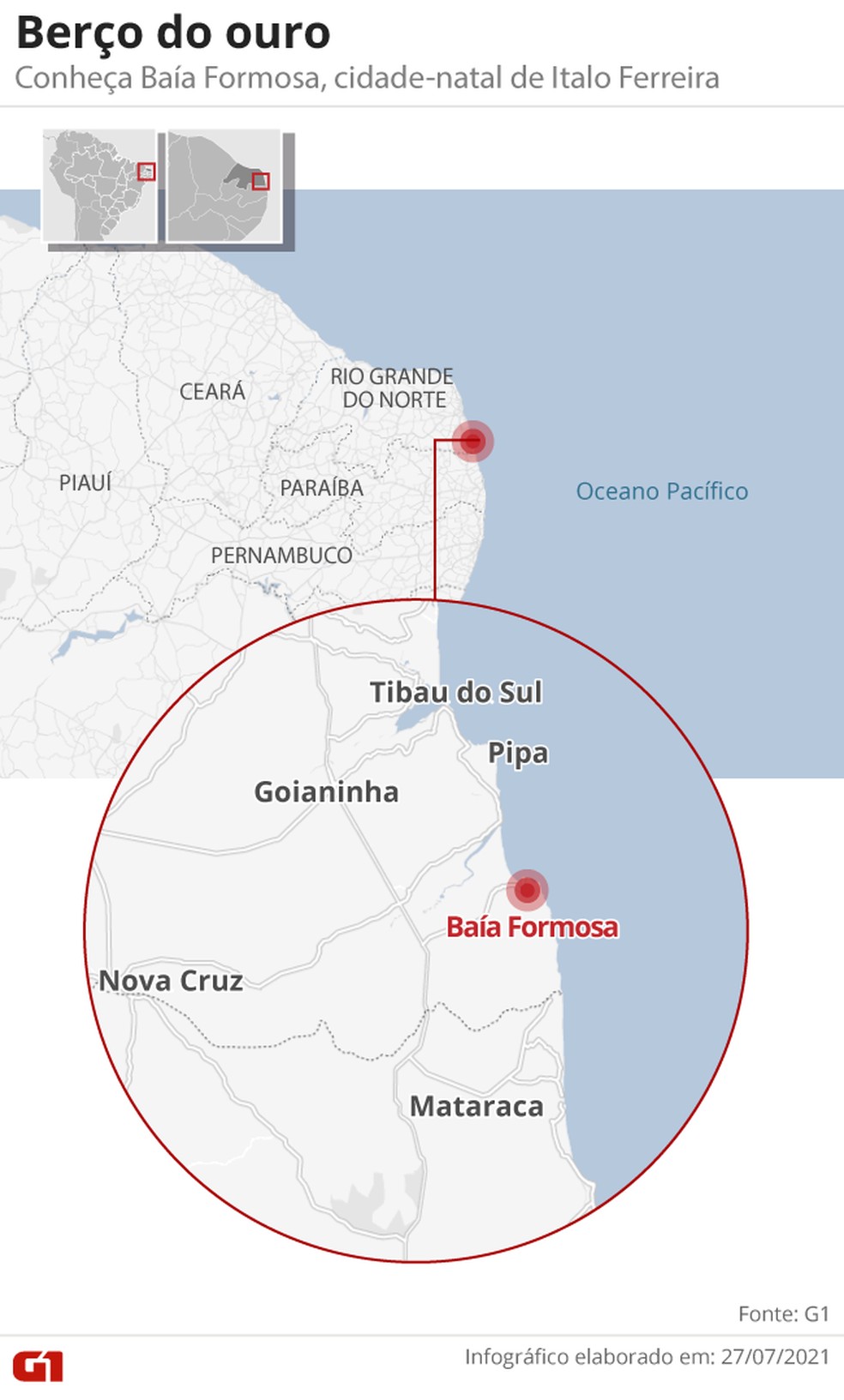 Moradores de Baía Formosa, no Rio Grande do Norte, saíram às ruas na madrugada desta terça-feira (27) para celebrar a vitória do conterrâneo Italo Ferreira na final do surfe masculino dos Jogos Olímpicos de Tóquio — o primeiro ouro do Brasil nestas Olimpíadas.